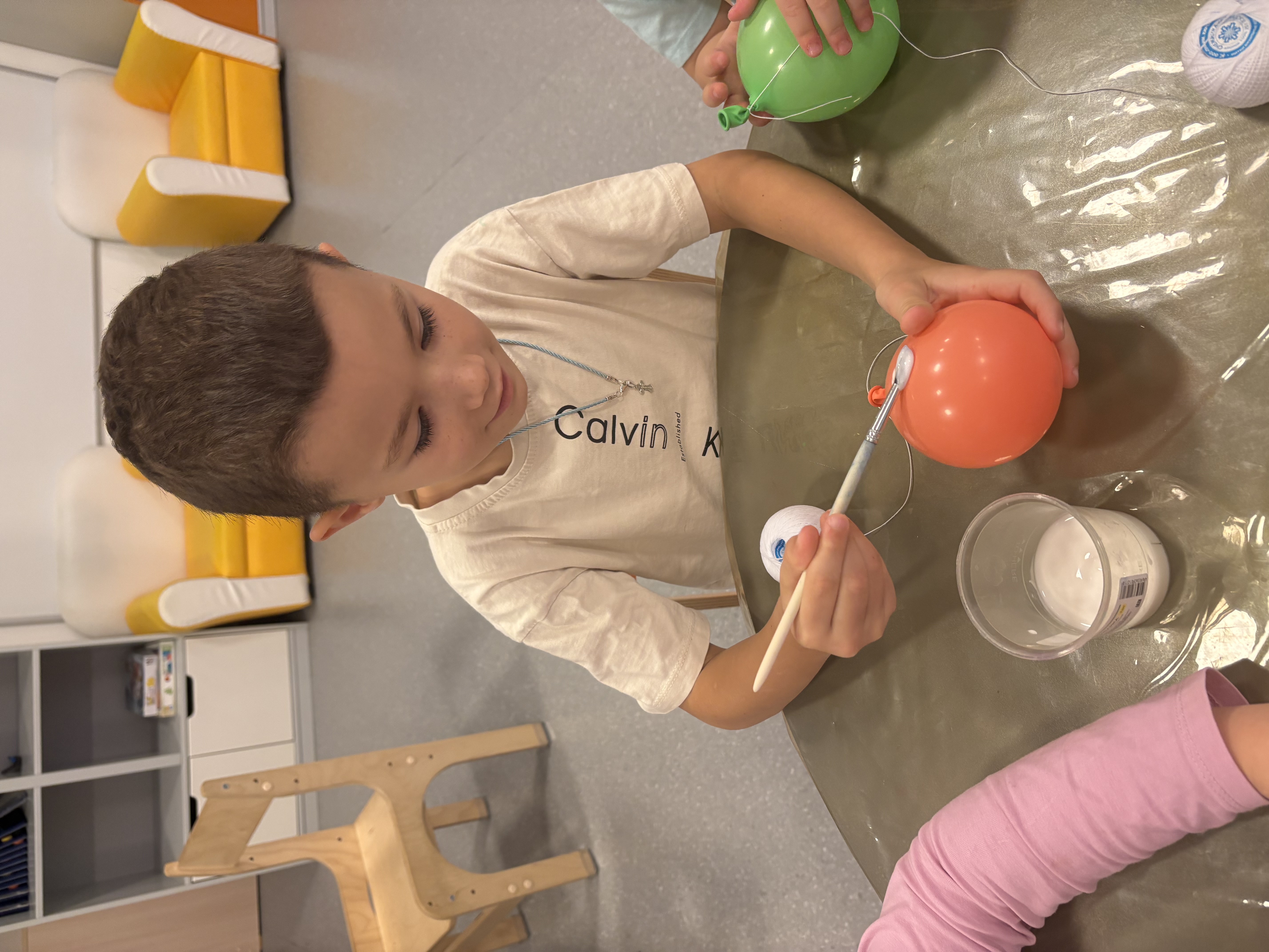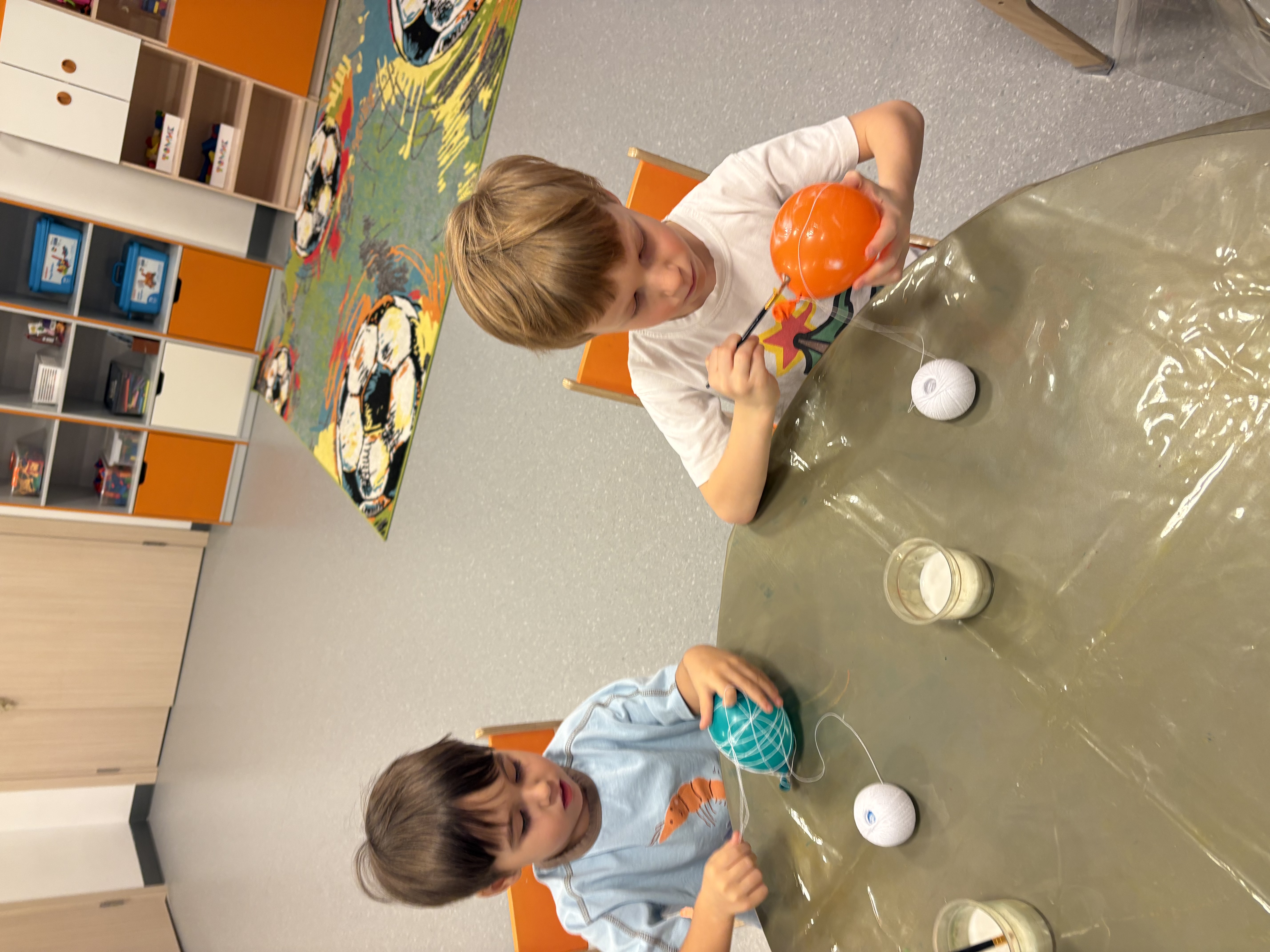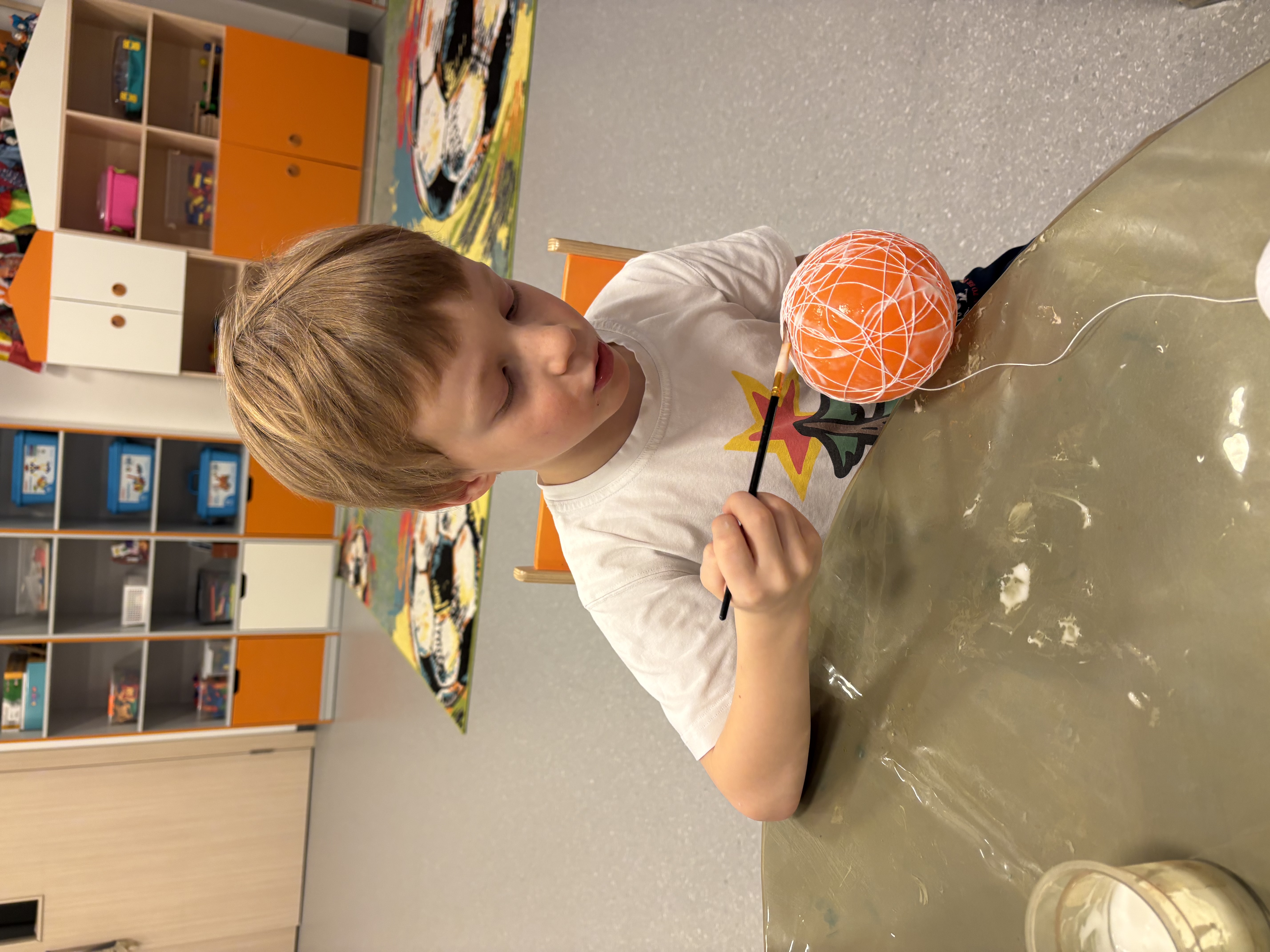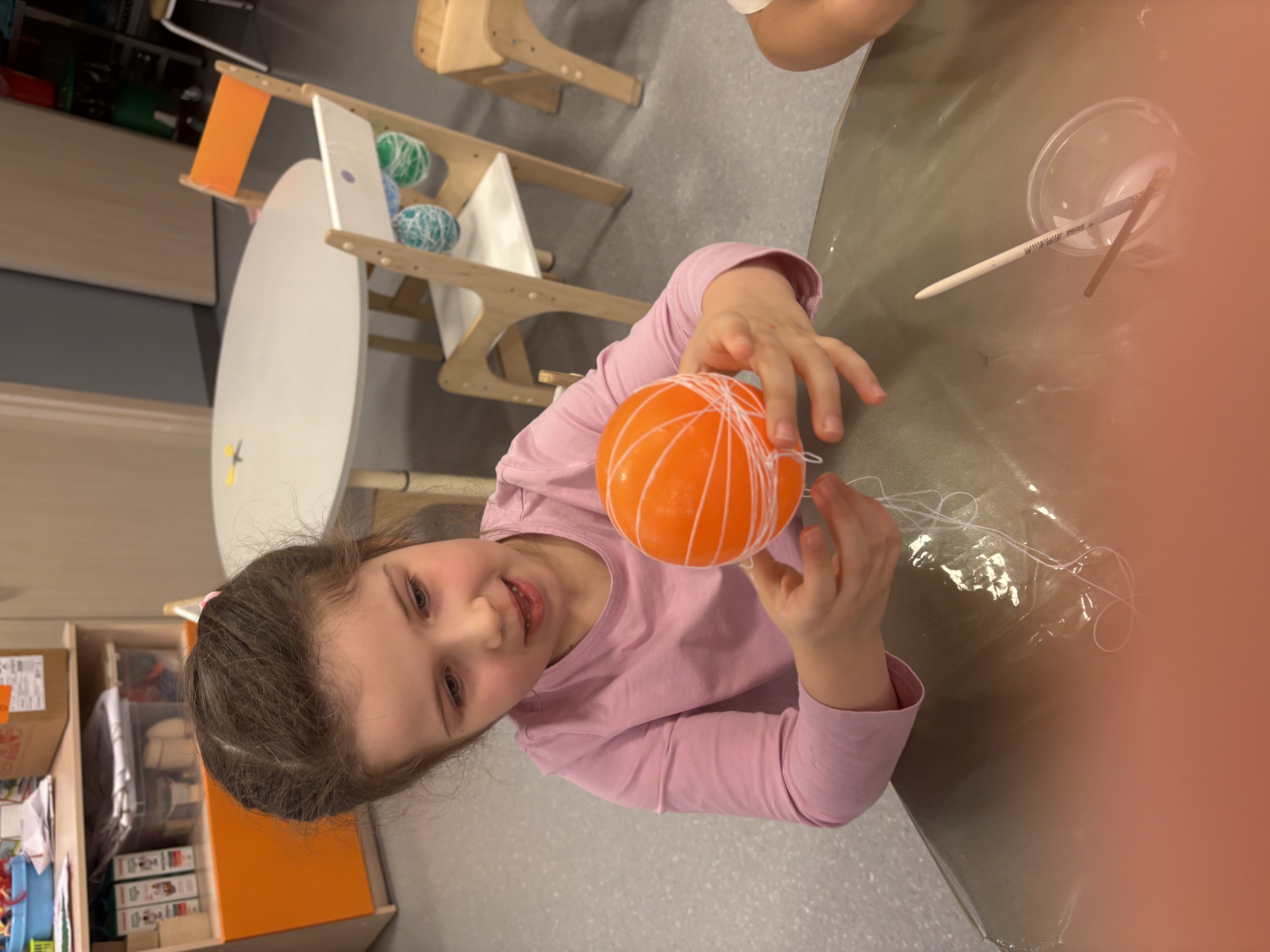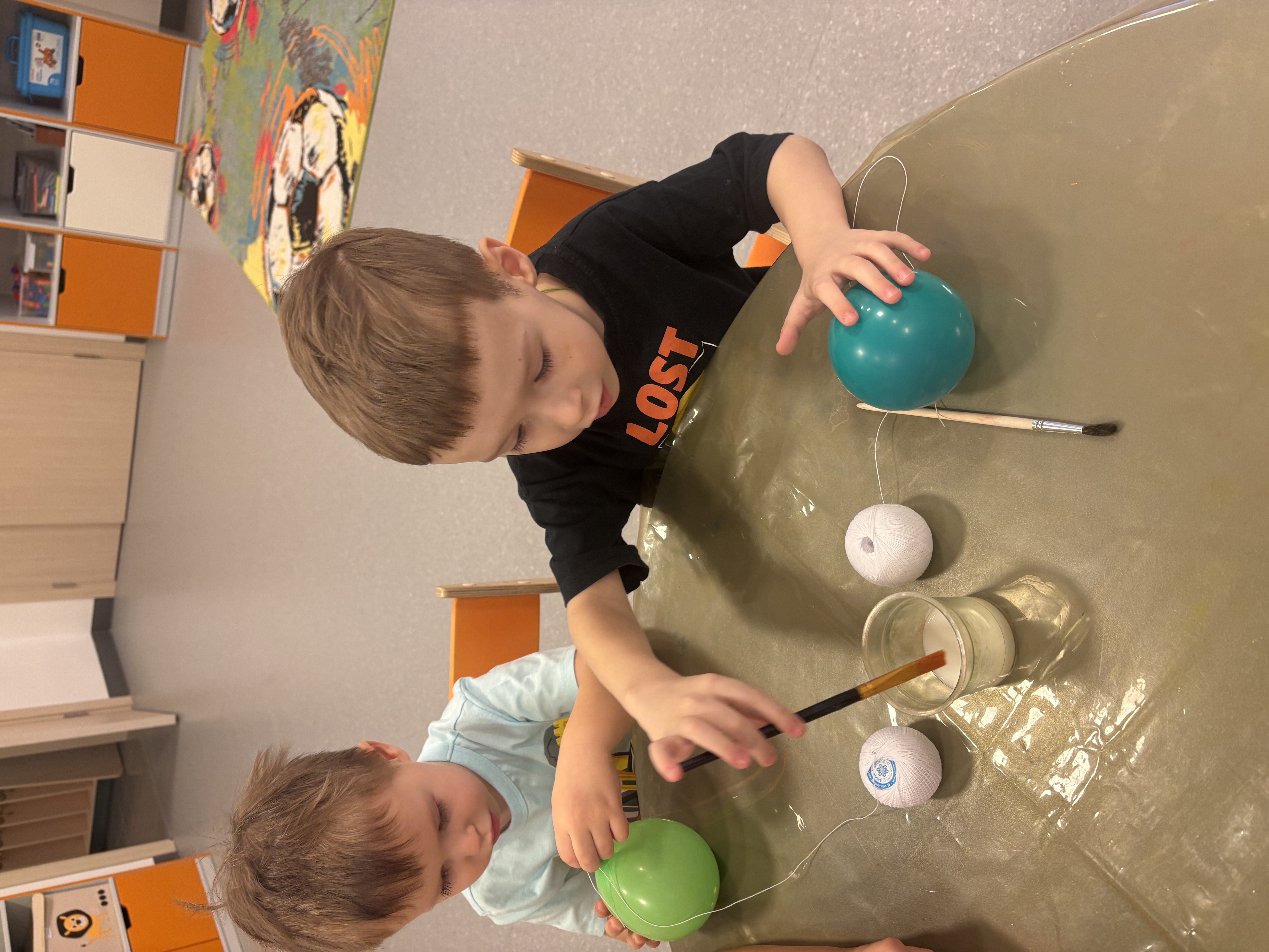 Мы надули воздушные шарики, нанесли клей на шарик и аккуратно обмотали его нитками, создавая ажурные узоры. Процесс творческий и медитативный.