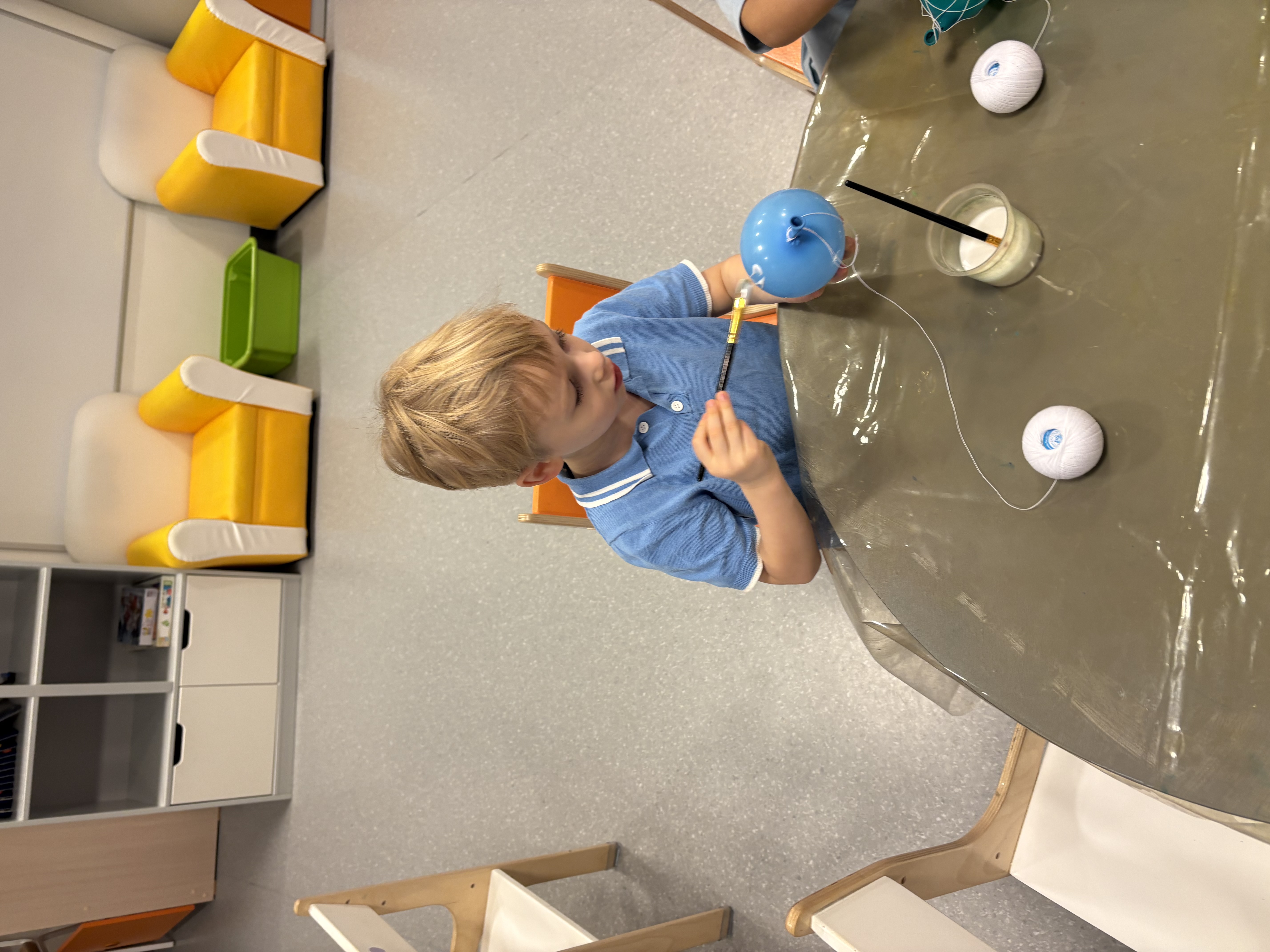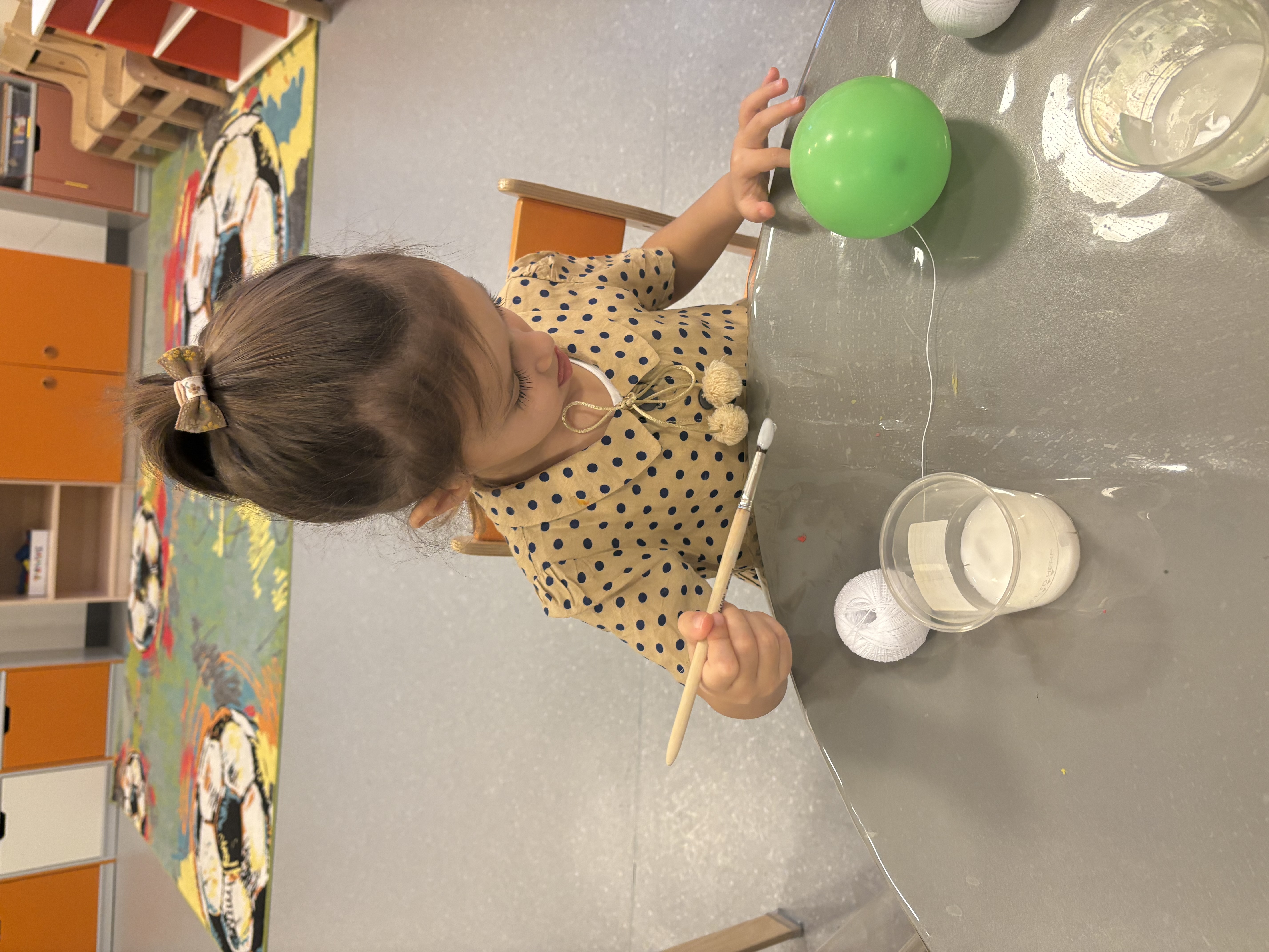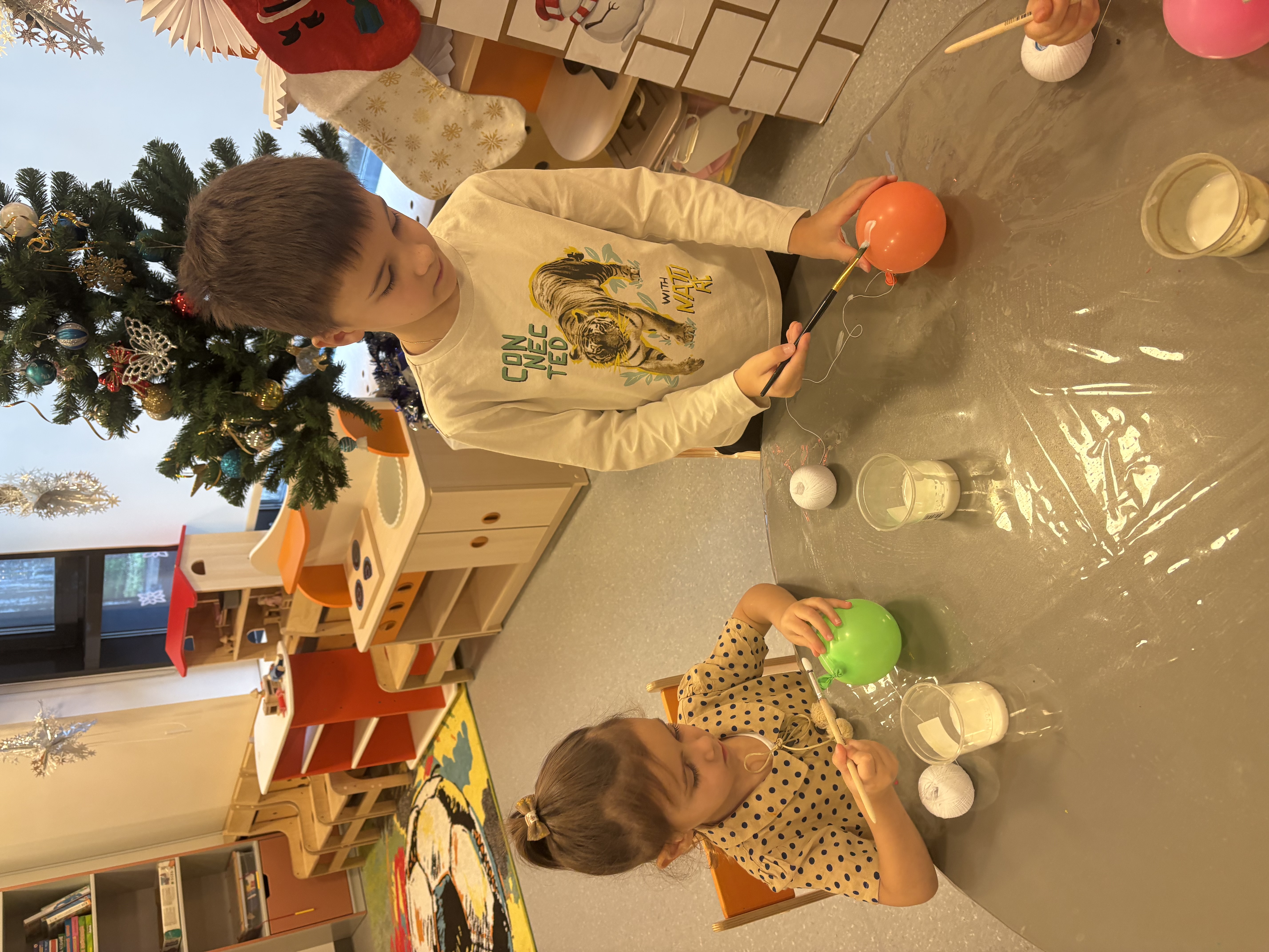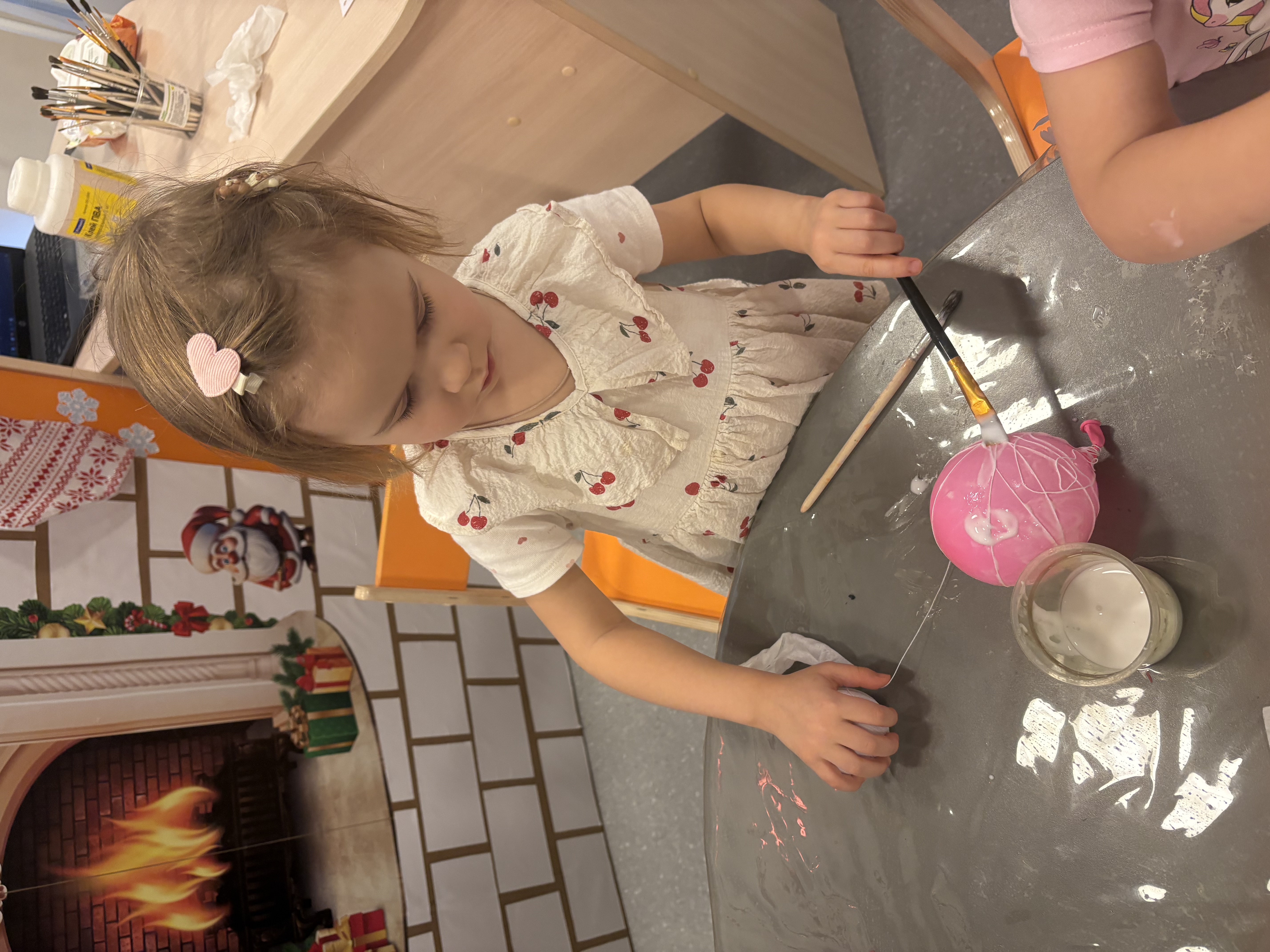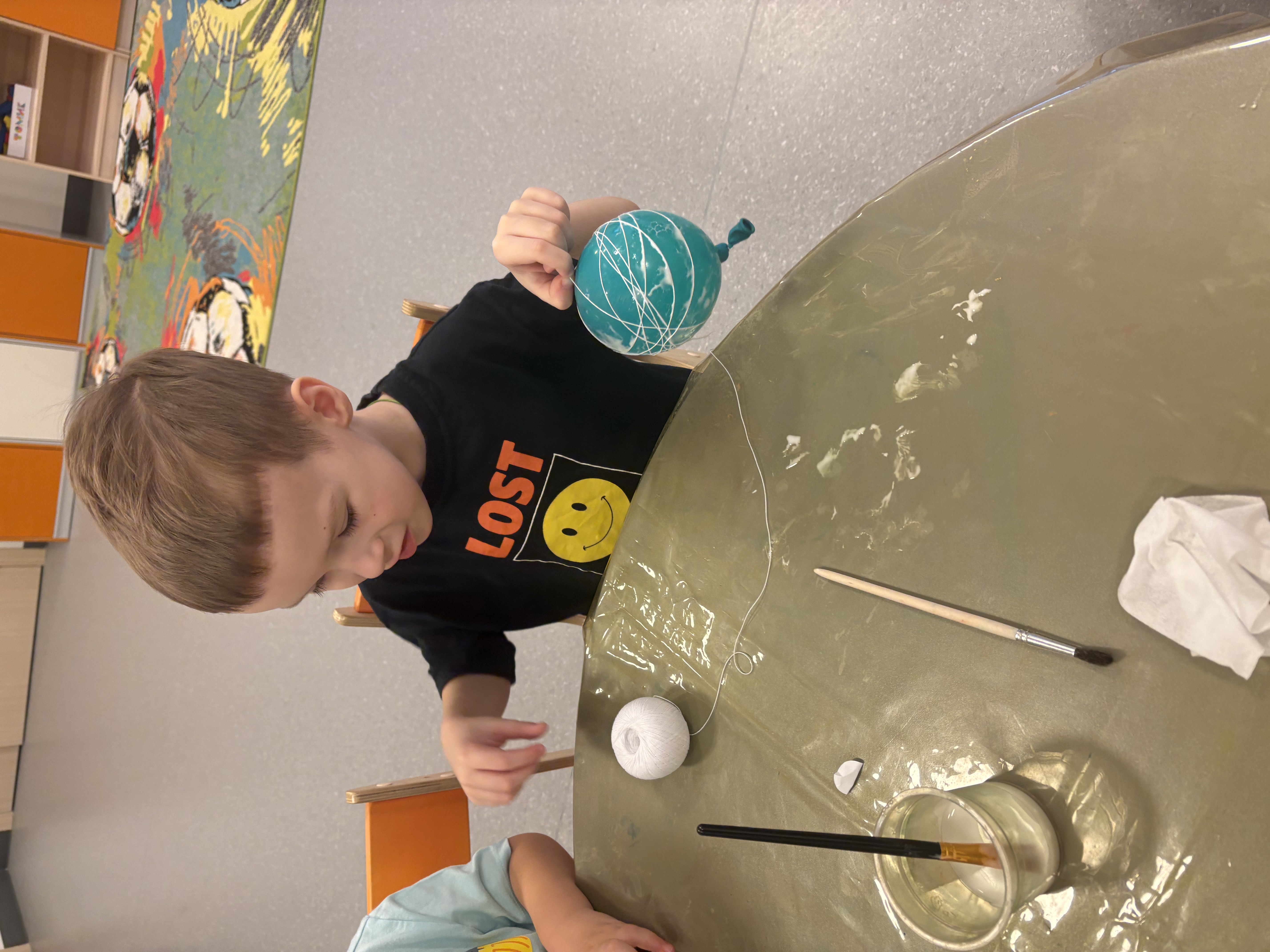 Мы надули воздушные шарики, нанесли клей на шарик и аккуратно обмотали его нитками, создавая ажурные узоры. Процесс творческий и медитативный.